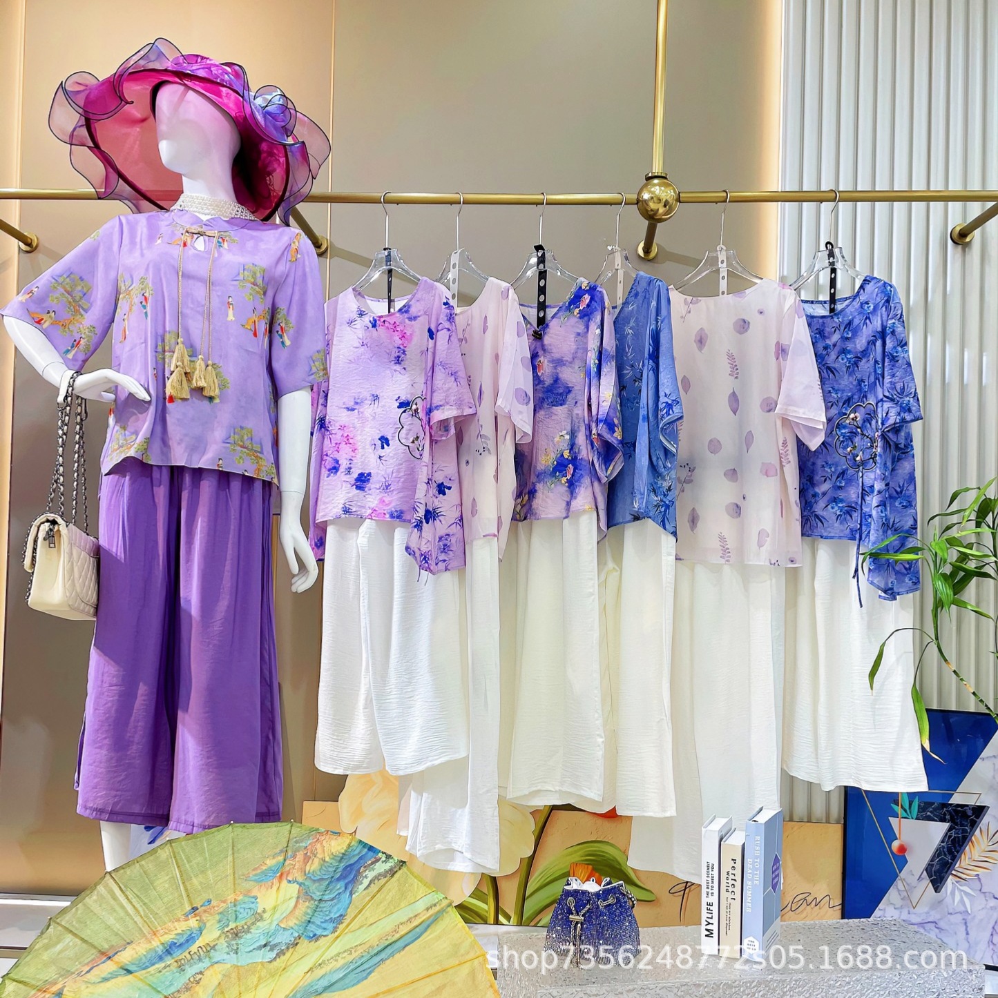 | nameOriginal | plus size Women's New Chinese Style Guofeng Two-piece Set Women's Summer Ink Button Tencel Top Solid Color Pants suit |