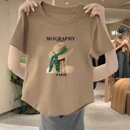 | nameOriginal | Plus size women's short-sleeved T-shirt 2023 Summer Korean style loose waist slimming round neck versatile printed T-shirt |