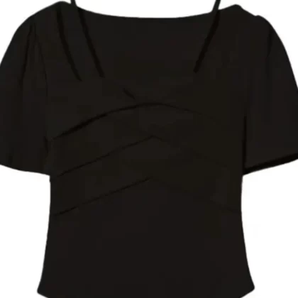 | nameOriginal | Plus size women's slightly fat apple-shaped French shoulder T-shirt short-sleeved 2024 summer new fat mm design top |