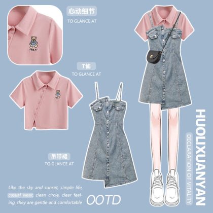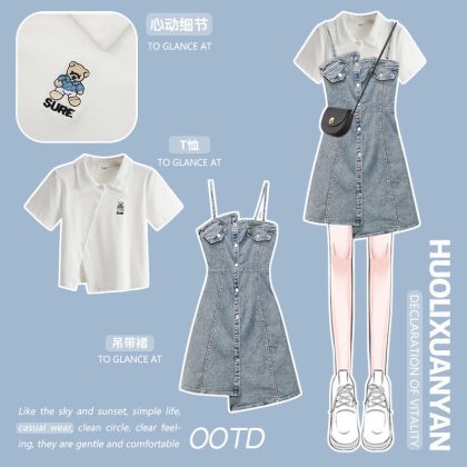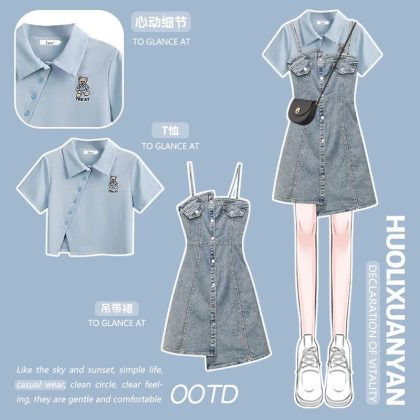 | nameOriginal | plus size Women's Summer suit Women's 2022 New Stylized Short-sleeved Top Women's Slimming Denim dress Two-piece Set |