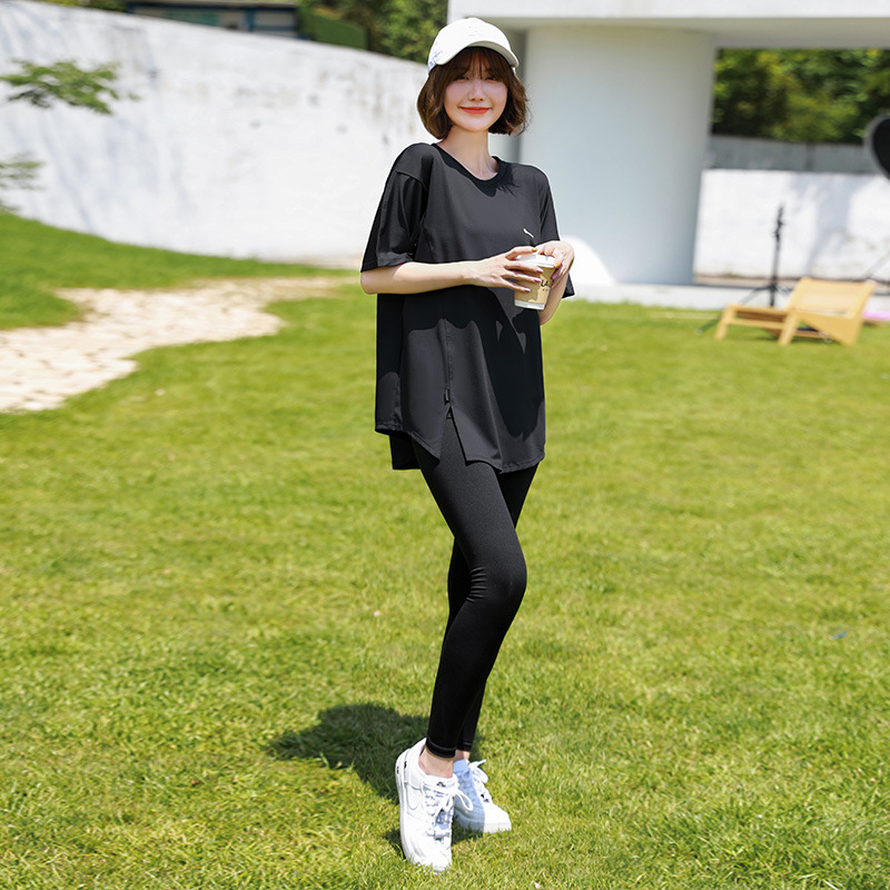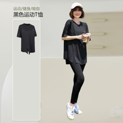 | nameOriginal | Plus size yoga clothes women's summer short sleeve suit fat mm200 kg solid color mid-length sports quick-drying fitness clothes women |