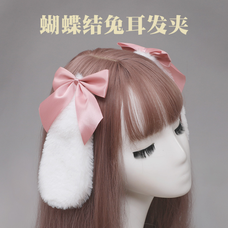 | nameOriginal | Plush cute lolita soft girl Lolita bow lolita lop-eared rabbit ears hairpin side clip headdress |