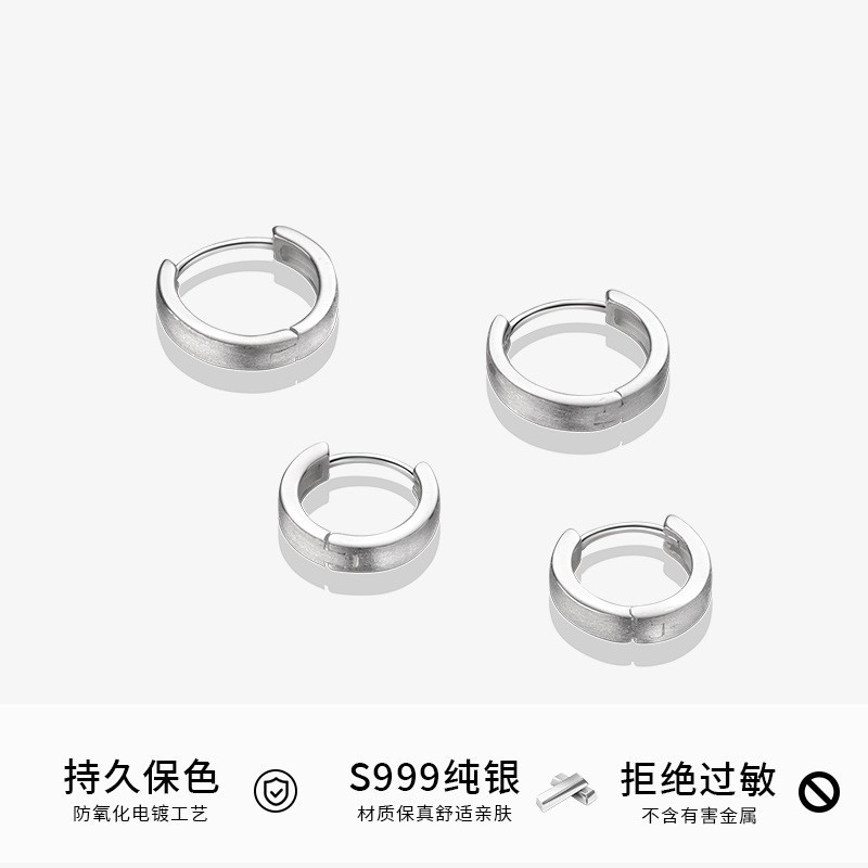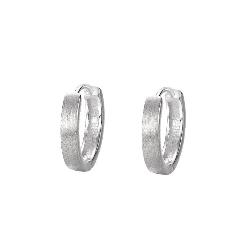 Po S999 Foot Silver Wire Drawing Round Ear Buckle Geometric Design Sense Raising Ear Holes Earrings Women's Cold Wind Design Ear Ring
