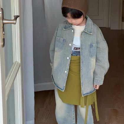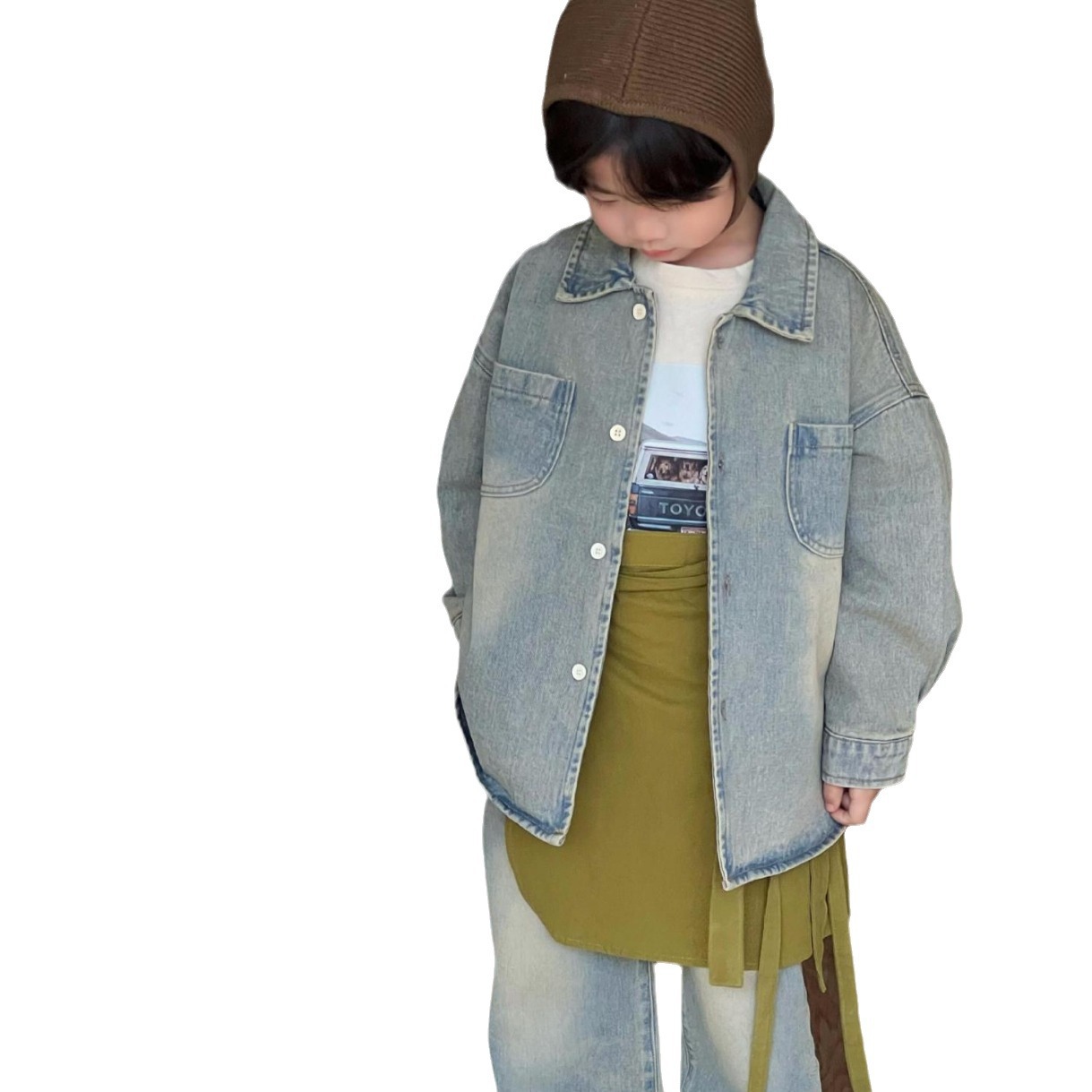 Pointed egg Korean children's clothing 2024 spring new boys and girls Denim shirt retro distressed Denim coat
