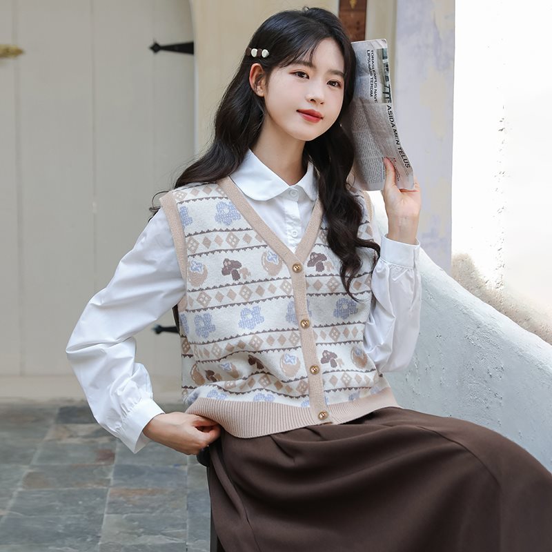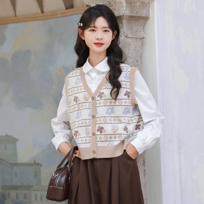| nameOriginal | Poka Qi 2024 Spring and Autumn New Plaid Floral V-neck Vest Vest Women's Knitted Cardigan Vest Casual Top |