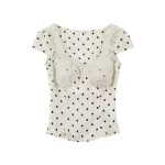 Polka dot T-shirt summer waist design lace top