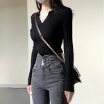 | nameOriginal | Polo collar bottoming sweater women's autumn and winter western style V-neck sweater tight low collar T-shirt top |