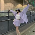 | nameOriginal | Polo collar letter print simple elastic waist shirt |