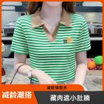 | nameOriginal | Polo Collar Short-sleeved T-shirt Women's Striped Distinctive New Fashion Stitching Contrast Color Stylish All-match Summer Casual T-shirt |