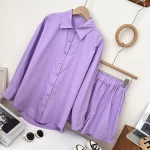 البولو عنق أحادي الصدر سراويل قميص عريضة الأكمام طويلة