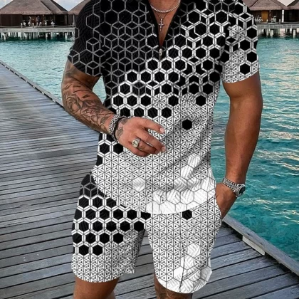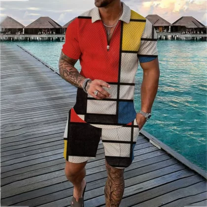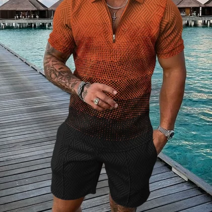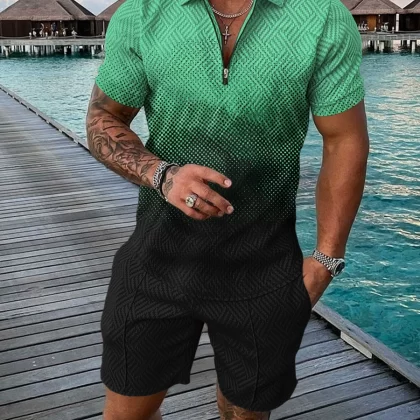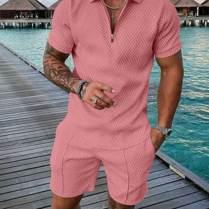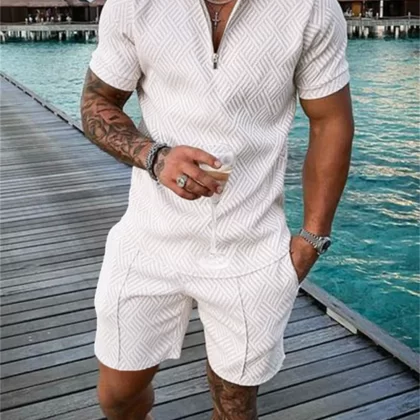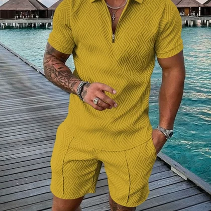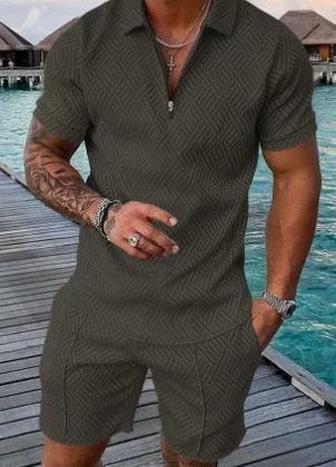 | nameOriginal | POLO Lapel T-Shirt Short Sleeve Suit POLO zipper lapel short sleeve suit |