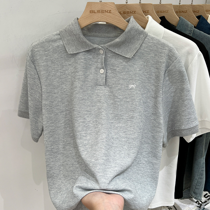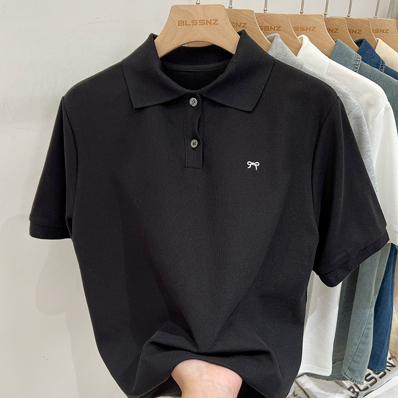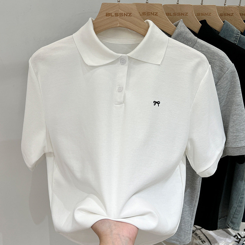 | nameOriginal | Polo Shirt Bow Embroidered Short-sleeved T-shirt Women's 2024 Summer New Style Chic White Base Shirt Top |