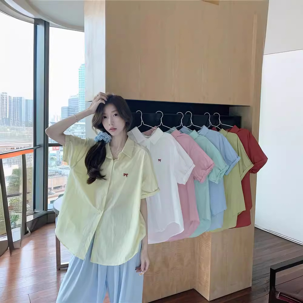 | nameOriginal | Pomelo Honey 2024 Design Polo Collar Short-sleeved Shirt Coat Women's Summer Bow Embroidered Mid-length Top |