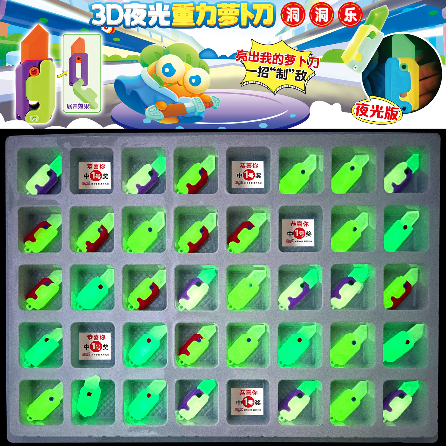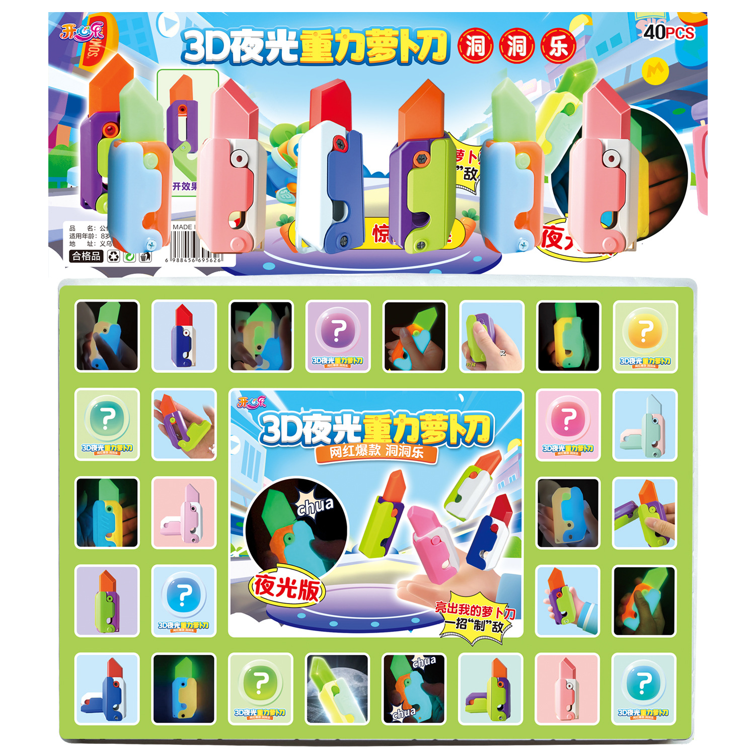 | nameOriginal | Popular 40-hole luminous radish knife hole music decompression toy blind box 3D printing gravity carrot knife wholesale |