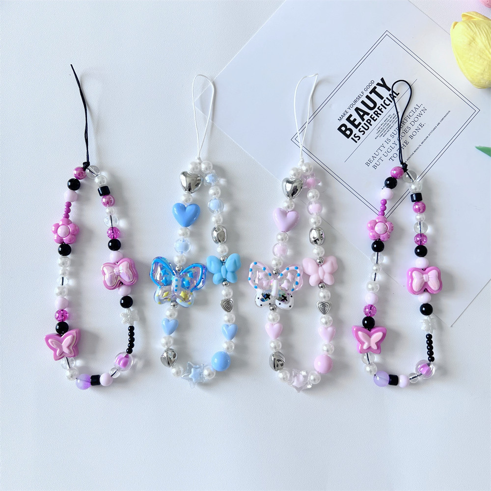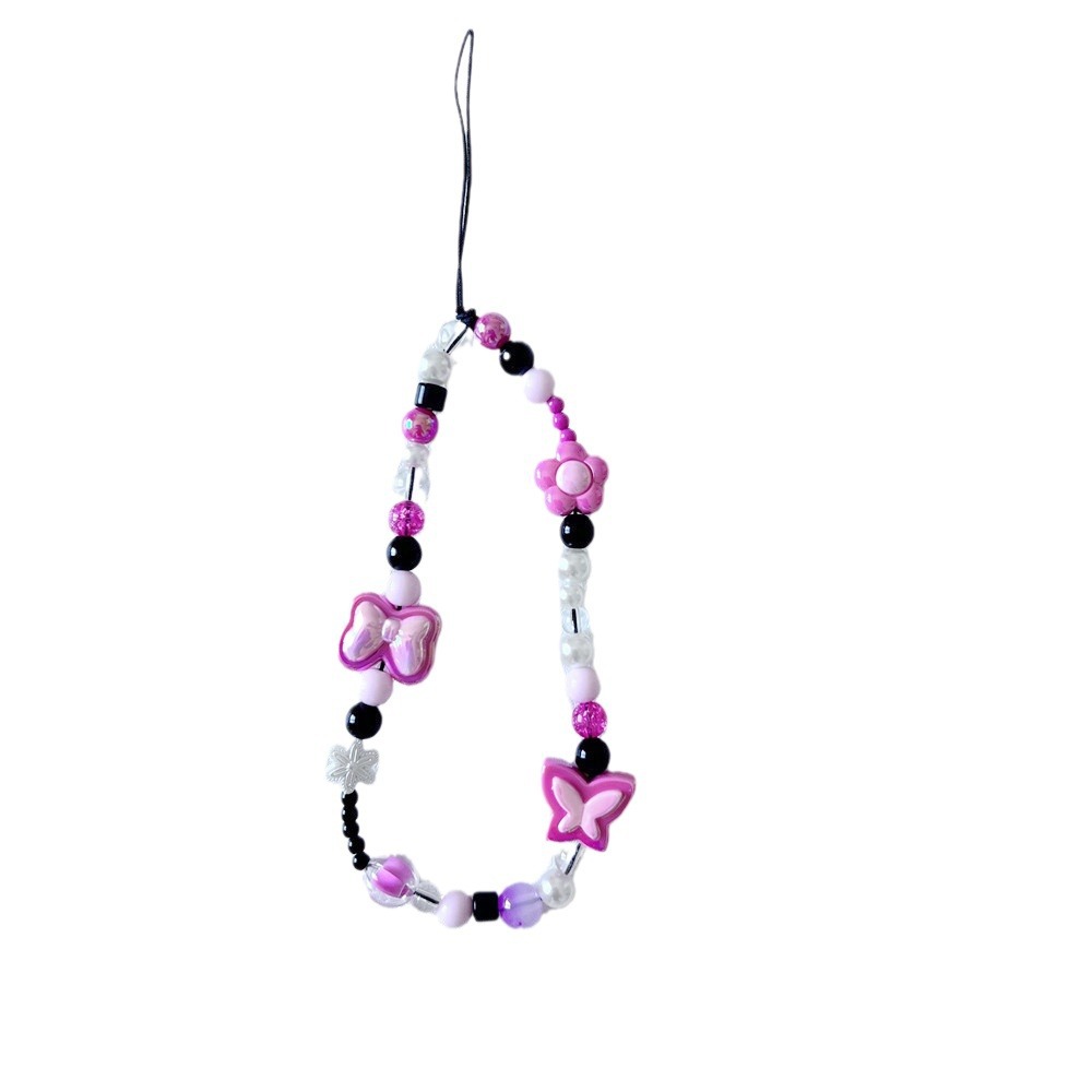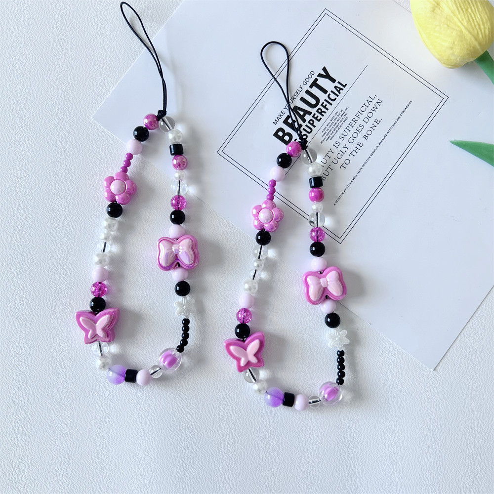 Popular cute girl pink flower beaded phone case lanyard flower jewelry accessories mobile phone chain ornaments