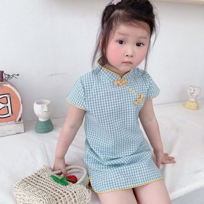 | nameOriginal | <> popular girls children's floral cartoon cotton and linen cheongsam gilded slit dress |
