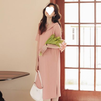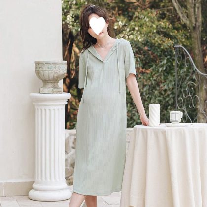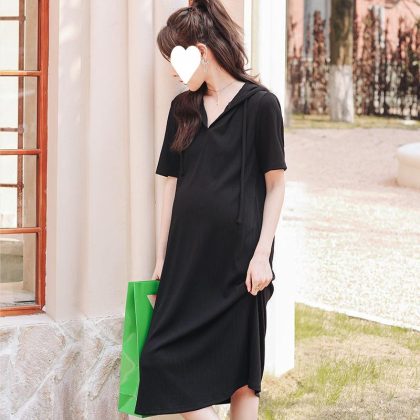 | nameOriginal | Pregnant Mom maternity dress summer split belly covering short sleeve collar summer hooded dress pregnant women plus size slimming dress hair generation |