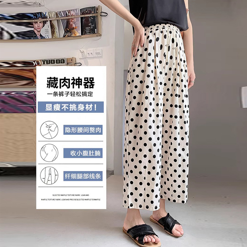 Pregnant women can wear ice silk wide leg pants summer thin high waist straight loose wave dot chiffon casual pants