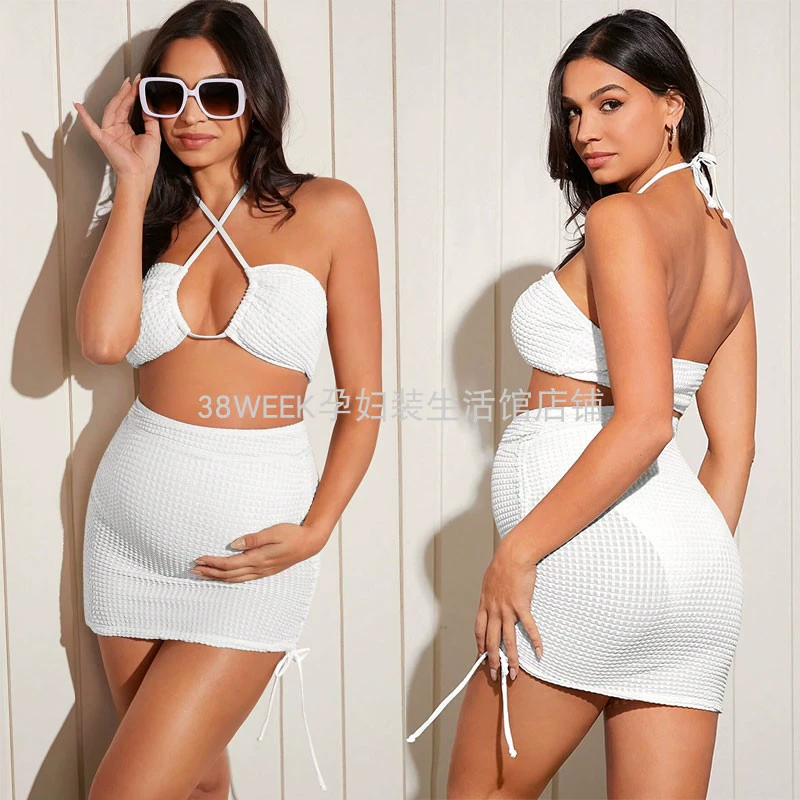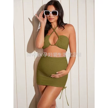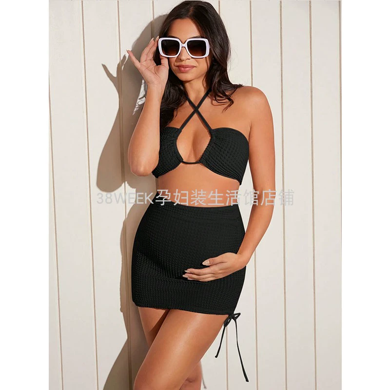 | nameOriginal | Pregnant women's bikini three-piece split swimsuit set, high-waisted belly-supporting swimsuit, sexy belly-covering swimming trunks, beach skirt |
