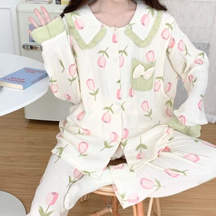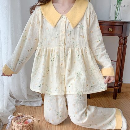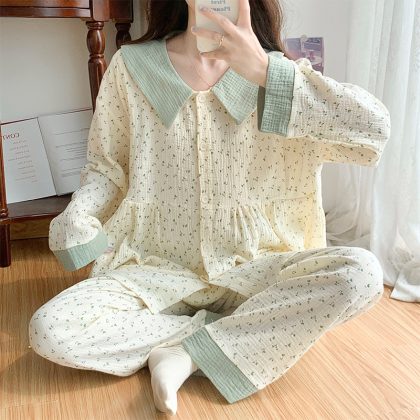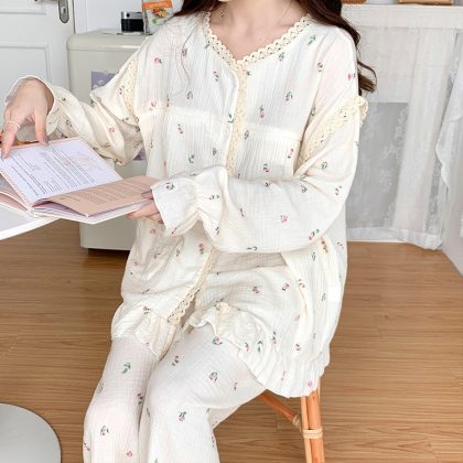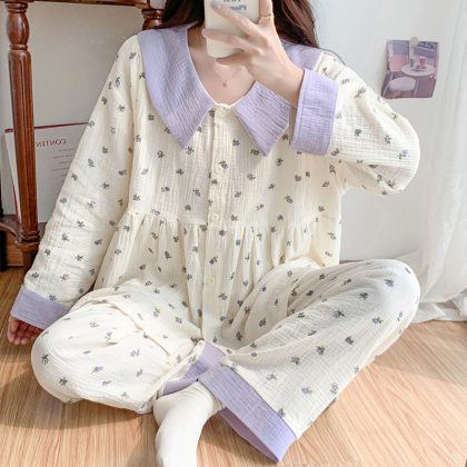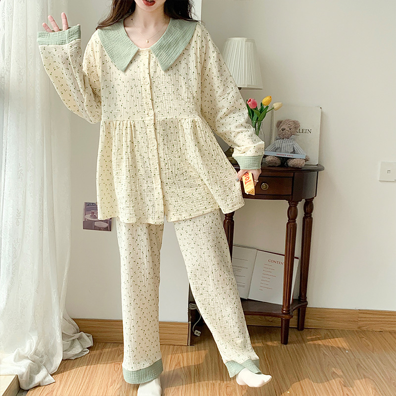 Pregnant Women's Pajamas Women's Spring and Autumn Thin Gauze Moon Clothing Summer Postpartum Breast-feeding Two-piece Suit Maternal Summer