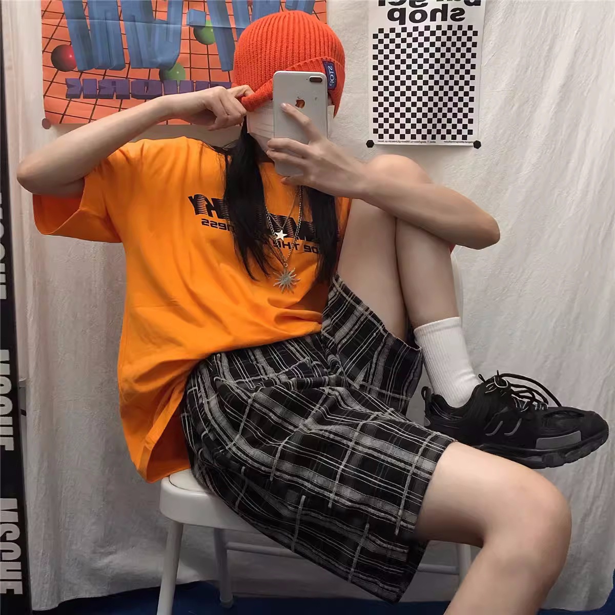 | nameOriginal | Pregnant women's shorts summer thin outer wear straight loose cropped pants plaid plus size casual sports wide-leg pants summer wear |
