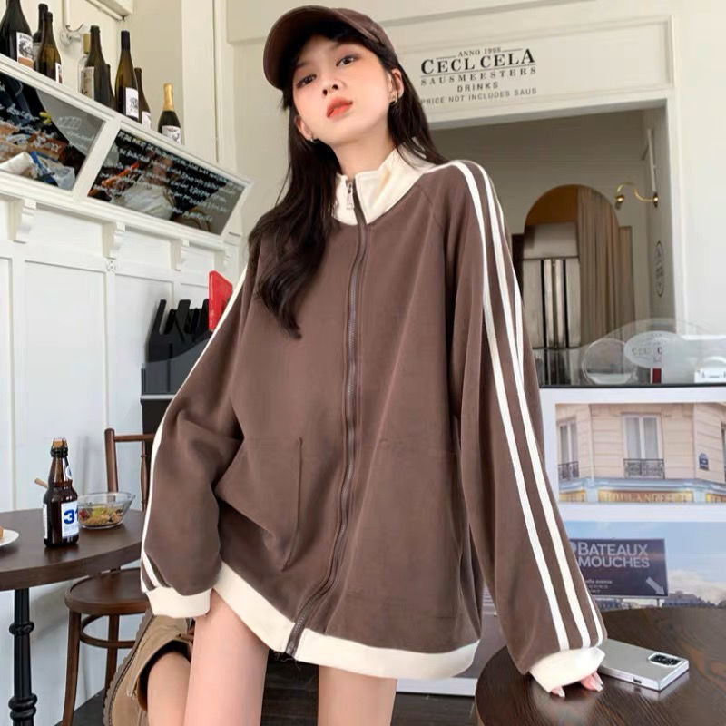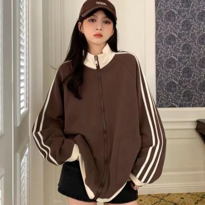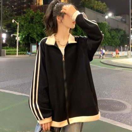 | nameOriginal | Preppy style contrast color stitching new Korean style loose stand collar sweater women's spring and autumn thin bf versatile loose top women |