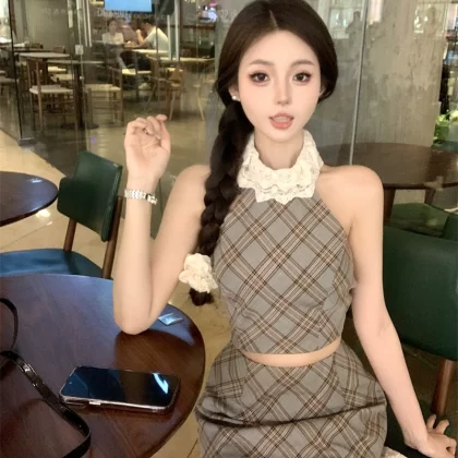 | nameOriginal | Preppy style women's summer American plaid hip-covering lace |