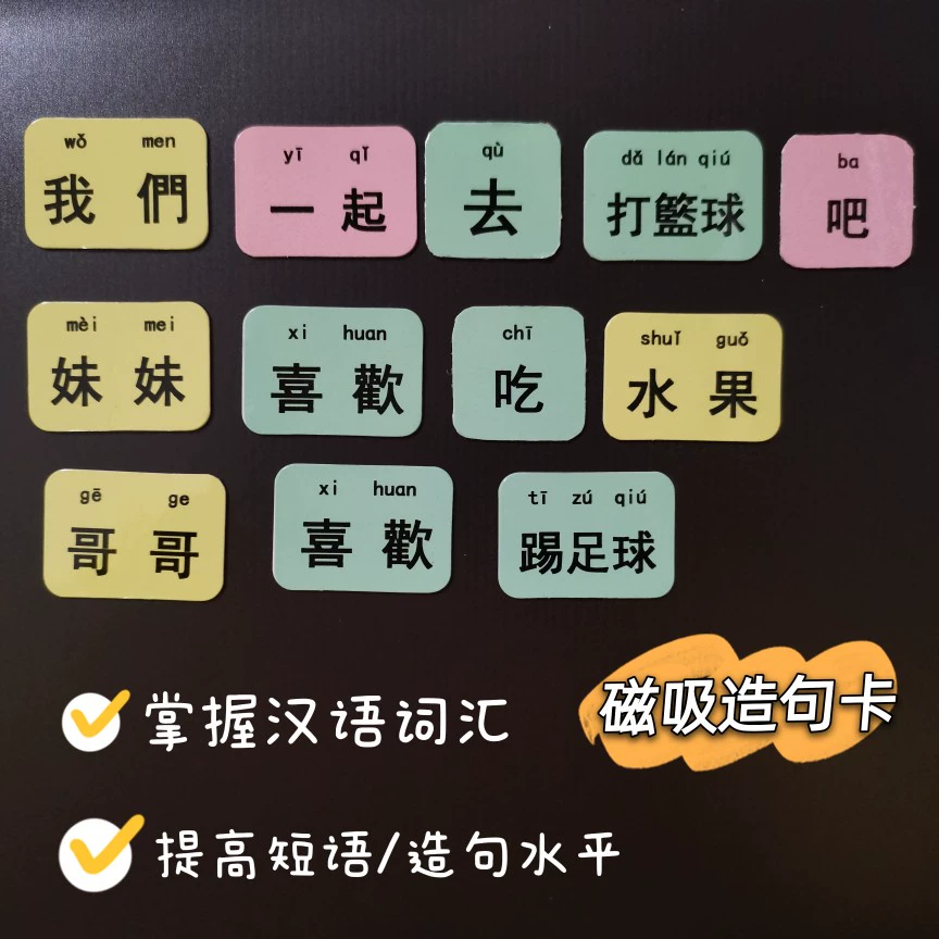 | nameOriginal | Primary school students make phrases and make sentences with traditional Chinese character literacy cards. Magnetic four- and five-prime sentence recognition words and conjunctions into sentences. Magnetic teaching aids. |