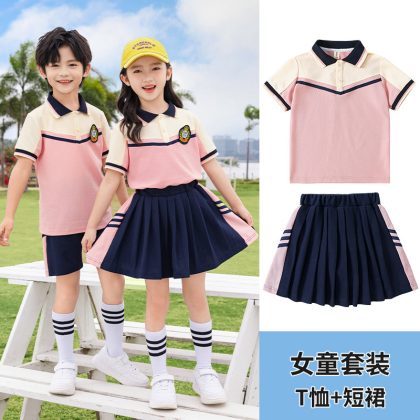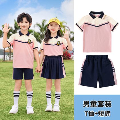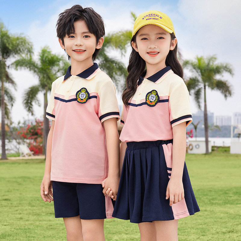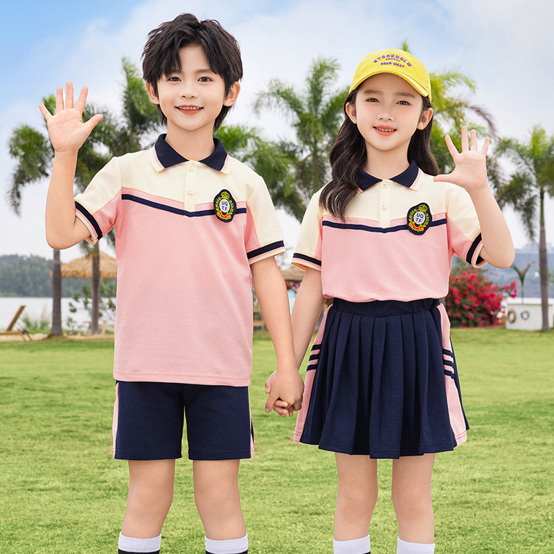 زي مدرسي لطلاب المدارس الابتدائية ملابس الصيف ملابس حديقة رياض الأطفال بدلة من الدرجة الأولى للأطفال بدلة صيفية بأكمام قصيرة مكونة من قطعتين