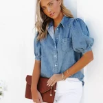 | nameOriginal | princess sleeve lapel thin denim shirt casual top for women |