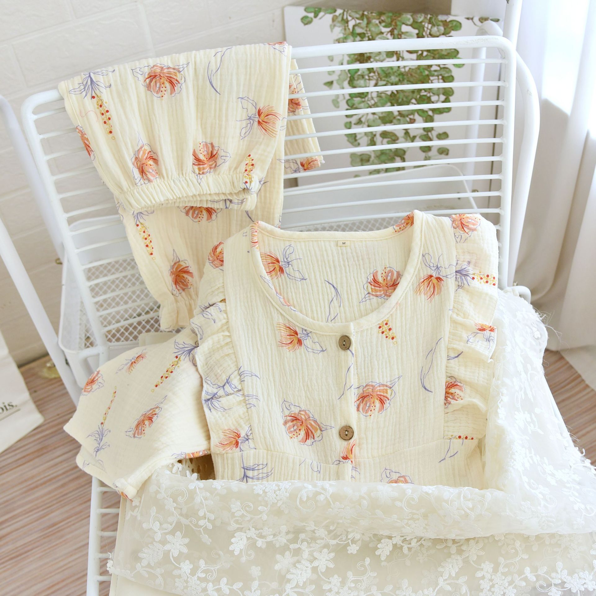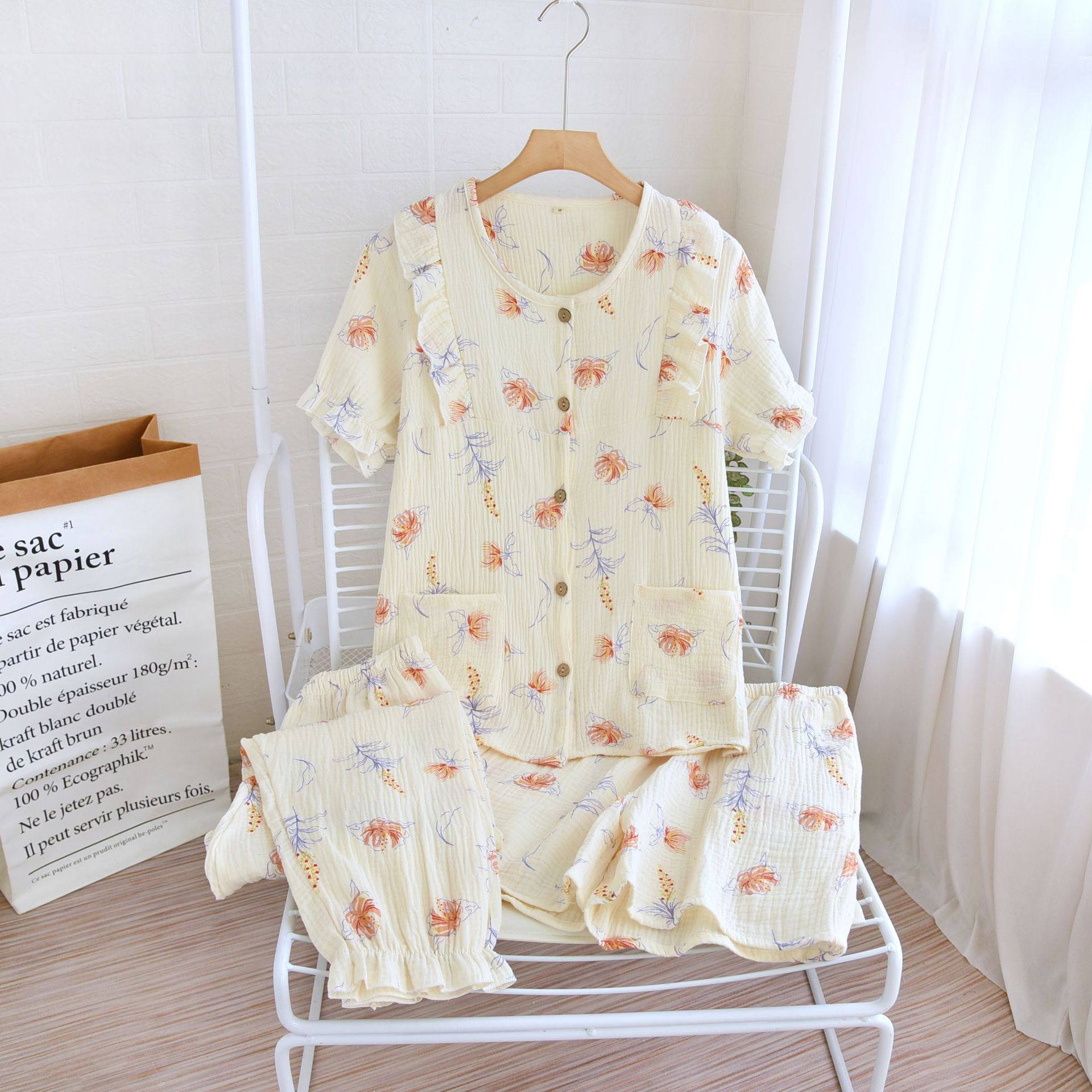 | nameOriginal | Princess Style Cotton Yarn Pajamas Women's Summer Short-sleeved Three-piece Set Cotton Outwear Sweet Summer Home Suit |