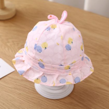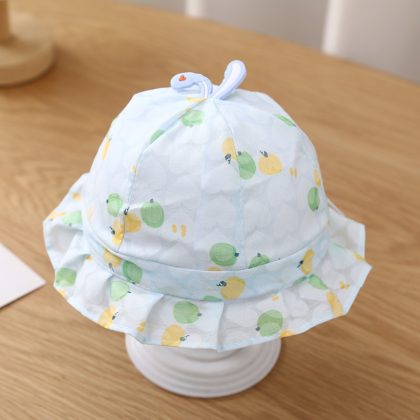 | nameOriginal | Printed baby fisherman hat drawstring 0-3 months baby sun hat new Korean style spring and autumn thin baby hat |