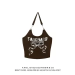 | nameOriginal | Printed halter neck strap slimming black bow |