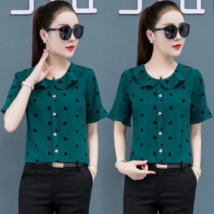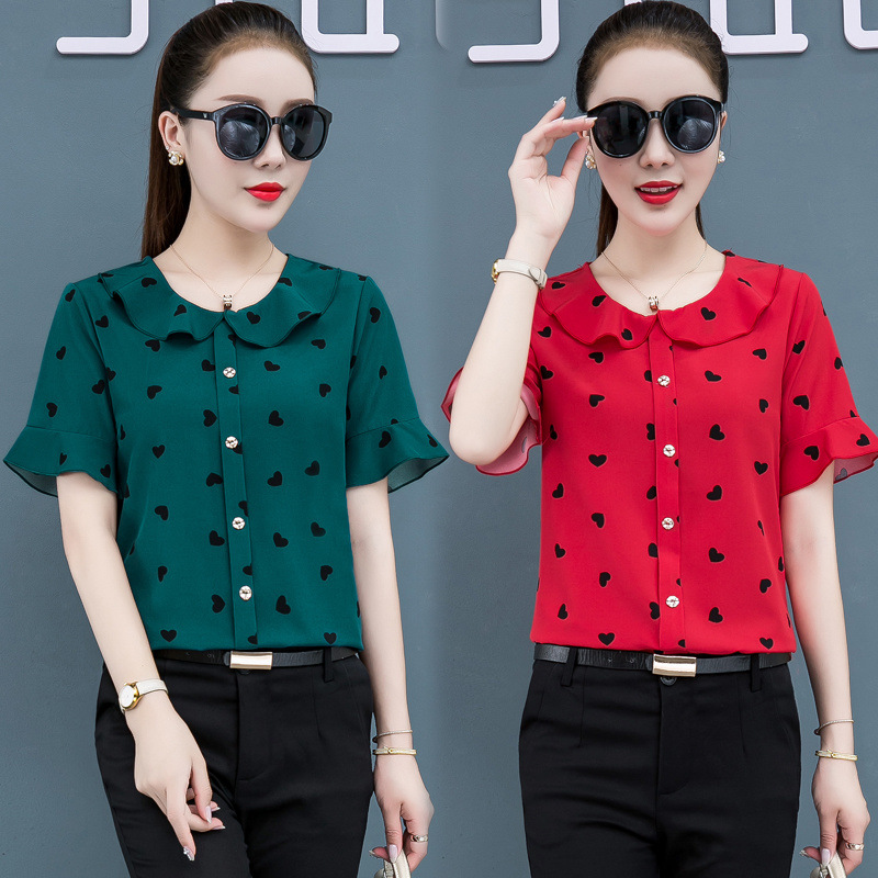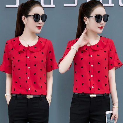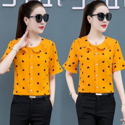 | nameOriginal | Printed Shirt Women's Short-sleeved Chiffon Top Women's Summer Korean-style Fashionable Belly-covering Slimming Elegant Western Style Small Shirt |
