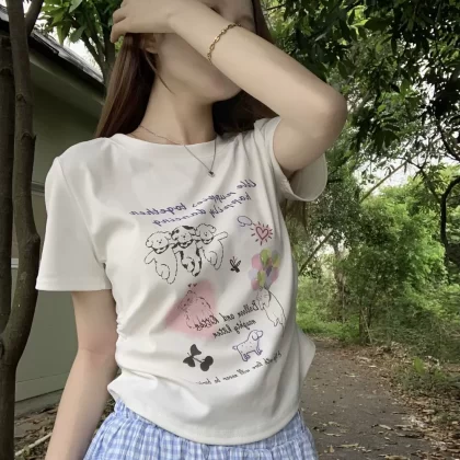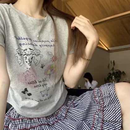 | nameOriginal | Printed short-sleeved summer design right shoulder round neck cartoon |