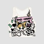 Printed Yoga Vest Shockproof with Chest Pad Tight-Fit No-Run Cup Seamless Breathable Cat Yoga Vest