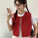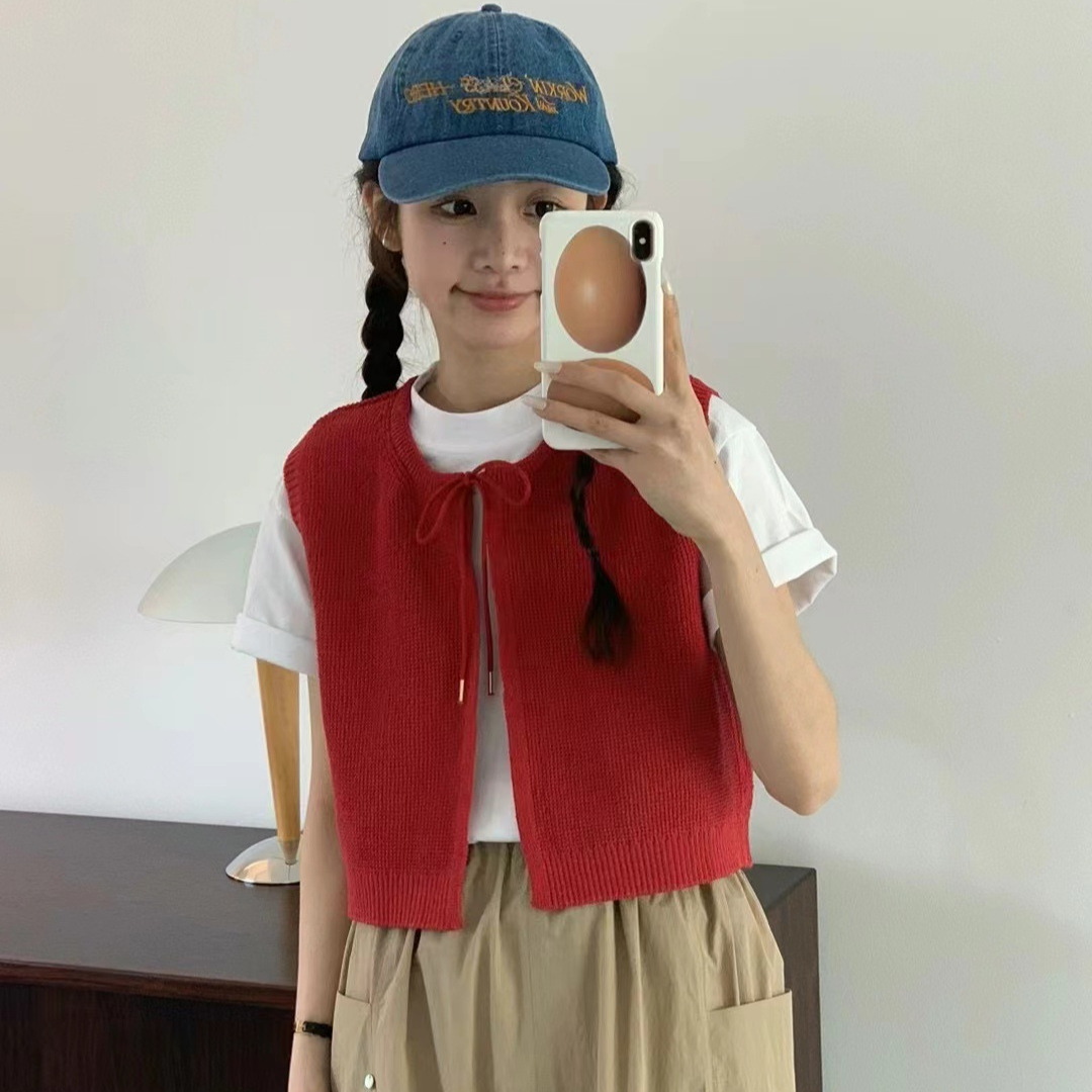 Production 2024 Spring and Summer New Korean-style All-match Sweet Bow Lace Linen Fold Vest for Women