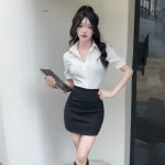 | nameOriginal | Professional workwear suit for women, summer sexy waist-cinching white shirt, short-sleeved slim shirt, hip-covering skirt, two-piece set |
