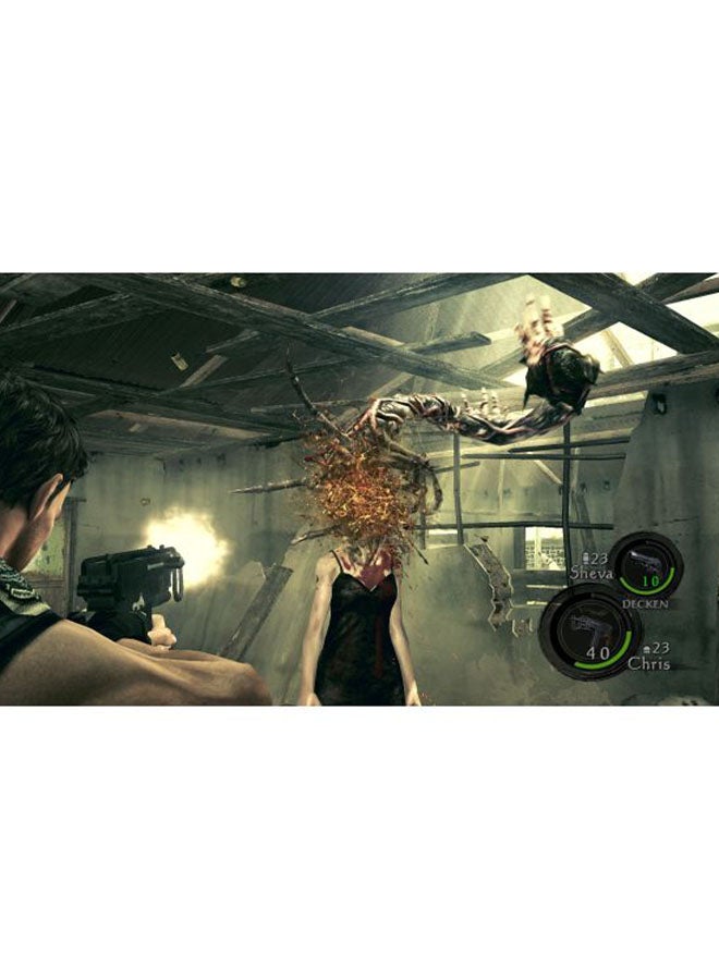 في لعبة Resident Evil 5، تلعب دور كريس ريدفيلد، العضو السابق في خدمة التكتيكات الخاصة والإنقاذ (STARS)، والذي هو الآن عضو في تحالف تقييم أمن الإرهاب البيولوجي (BSAA). مهمتك هي التحقيق في تهديد إرهابي في أفريقيا، حيث ستواجه أعداء خطرين وتكشف مؤامرة شريرة.