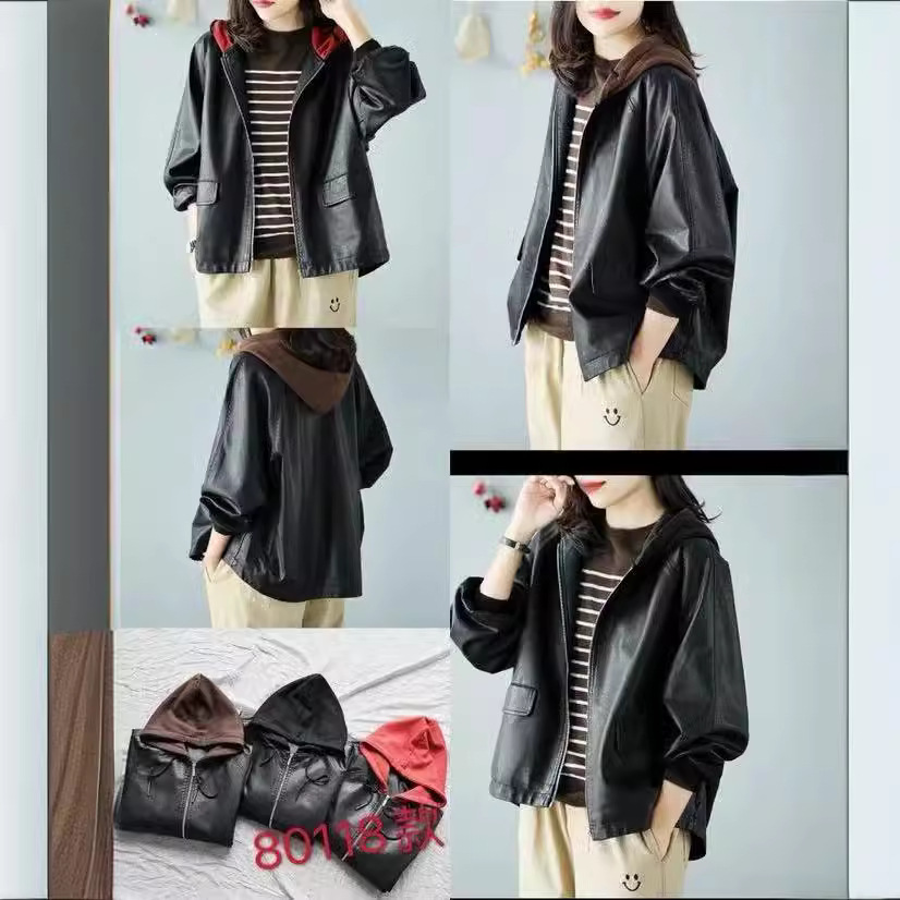 | nameOriginal | PU leather coat 2024 spring and autumn new top women's retro art hooded leather 80118 |