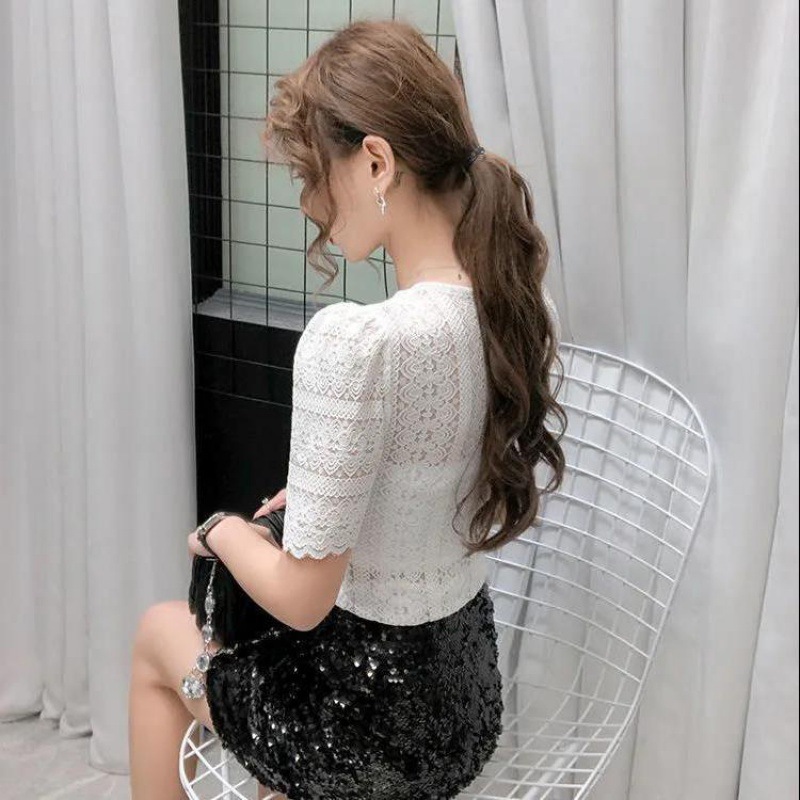 | nameOriginal | Puff Sleeve Hollow Lace Shirt Women's Summer New Short-sleeved V-neck Sexy Top Women's Niche Slim-fit All-match Small Shirt |