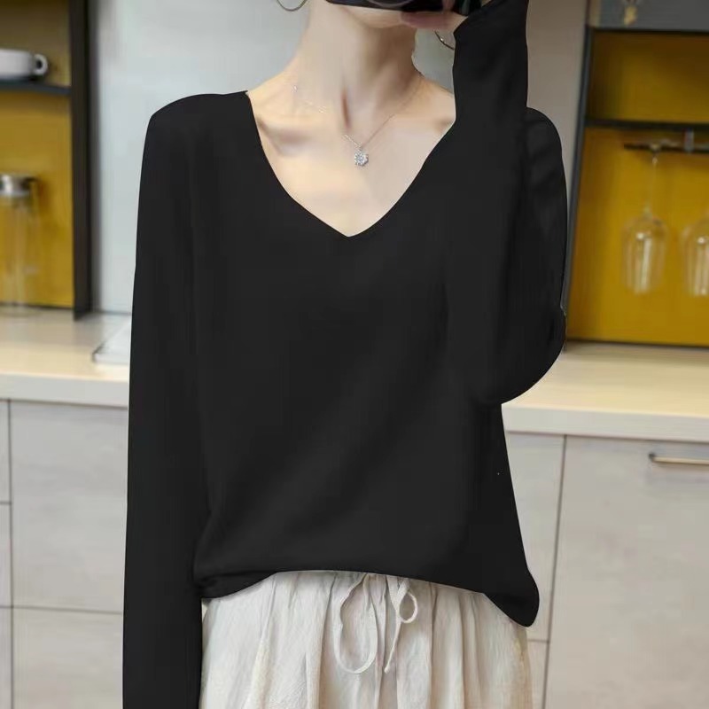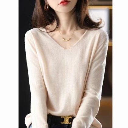 | nameOriginal | Pullover bottoming shirt 2023 autumn and winter New modal anti-Pilling simple sweater loose sweater women's V-neck fashion |