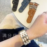 Punk style Apple watch iwatch876 generation SE suitable for applewatch9 leather metal chain strap