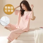 | nameOriginal | Pure cotton all-in-one pajamas with chest pads for women, summer short-sleeved cropped pants, Korean style, can be worn outside, anti-bump home wear set |