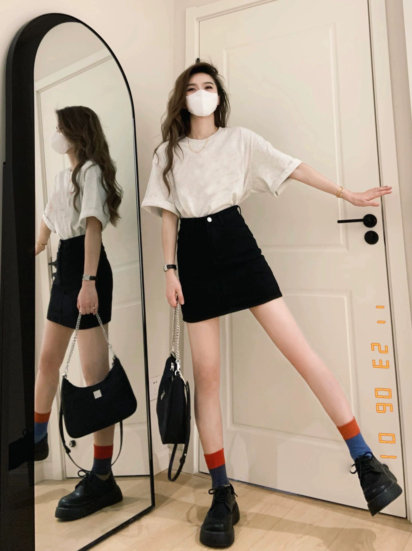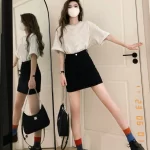 | nameOriginal | Pure cotton and black high-waist denim short-sleeved T-shirt |
