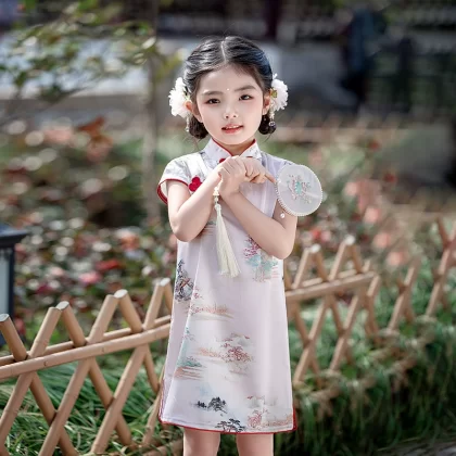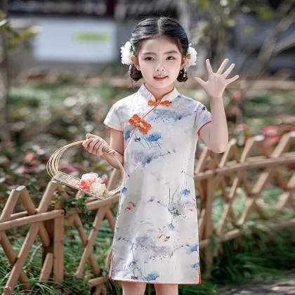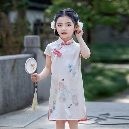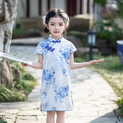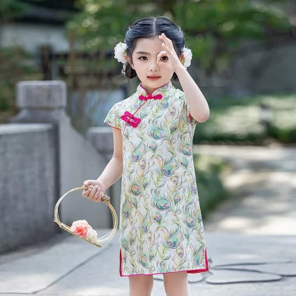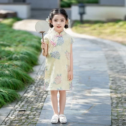 القطن الصيني الرجعية الأزهار الأداء الأداء الأداء الأكمام القصيرة