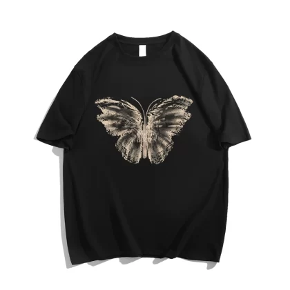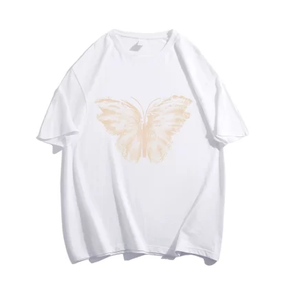 تصميم القطن t -shirt الفراشة طباعة كبيرة الحجم قصير الأكمام كبيرة الحجم أمريكي كبير الرجعية الزوجين أعلى المد