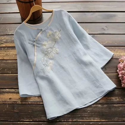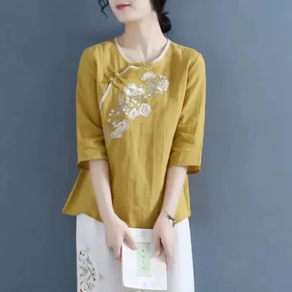 nameOriginal | Pure cotton diagonal placket Chinese plate button three-quarter sleeve T-shirt art |