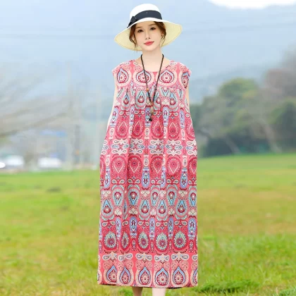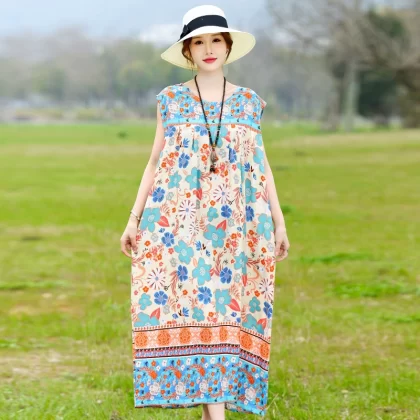 | nameOriginal | Pure cotton dress plus size beach vacation mom wear |