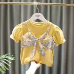 Pure cotton Korean style thin short-sleeved baby girl cartoon T-shirt